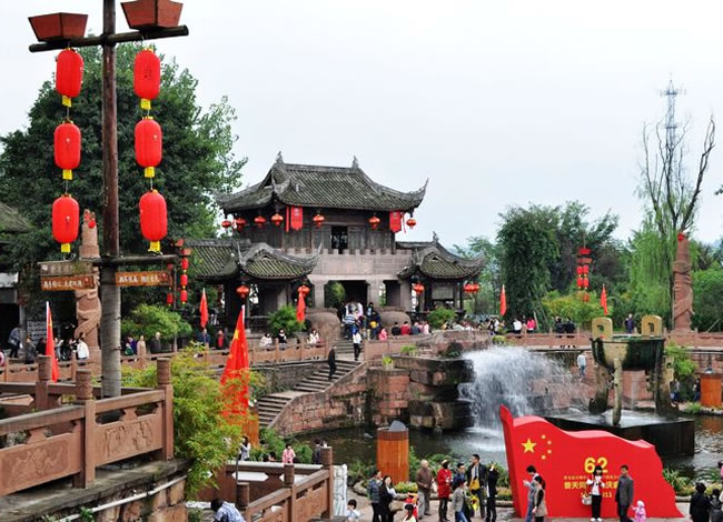古鎮(zhèn)屬四川省歷史文化古鎮(zhèn)及省級(jí)旅游風(fēng)景區(qū)。古鎮(zhèn)不僅風(fēng)光秀麗、環(huán)境優(yōu)美,還是馳名中外的天然影視攝影基地。古鎮(zhèn)主要特色是:古街、古樹、古廟、古水陸碼頭、古建筑和古樸的民風(fēng)民俗。是國家文化部命名的中國民間藝術(shù)(火龍)之鄉(xiāng)、國家級(jí)環(huán)境優(yōu)美小城鎮(zhèn)。素有“影視城”、“中國好萊塢”之稱。
