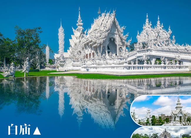 早餐后,乘車往清萊府(車程約2小時),途中可游覽【馬尼信溫泉】(約20分鐘),也可以在天然溫泉里面浸泡雙腳以緩解旅途的疲勞,溫泉旁邊還有座寺廟,風格是類似吳哥窟那里的建筑。前往參觀【白廟】(約60分鐘),此座寺廟是由泰國有名的藝術家大師查倫猜所建,獨具泰國風格的白色的建筑物徜徉在蔚藍的天空,堪稱一件精美的藝術作品也稱之為白廟。不同于別處看到的寺廟,這里特色不僅僅是純白的屋頂,純白的墻壁,純白的基座,還融入了很多藝術家的思想和思維,整體風格似乎有西洋建筑的影子,不僅精美杰倫,還別具匠心,既大氣磅礴,又柔美似水。最主要是用建筑、用雕塑詮釋了佛教的含義、佛教的精華、佛教的智慧。除了佛教,還看到了其他宗教的影子和人物,表現出佛教的包容與博大。奈何橋:下面有千百只手在揮動、掙扎、呼喊,這是地獄里的墮落的靈魂在等待被救贖,也告誡世間人們要行善、積德,多做好事,來世才不會入恐怖的地獄。這里的衛(wèi)生間也是值得打卡的地方:精美絕倫,華麗無比,是世界上被拍照最多的衛(wèi)生間,每個到過白廟的人都會在這里留影,照的就是一件藝術品。祈愿井:這里很多人都會投下一枚硬幣。許愿亭:很多人在這里許下心愿,祝福自己和家人。同其他廟宇不同的這里的許愿牌仿佛是開啟人生的鑰匙,密密地掛在一起,莊重又壯觀,太多了,后面一大長廊都是,保存得很好,也是對許愿者最大的尊重。隨后前往【藍廟】(約60分鐘)藍廟有120年的歷史,此前只不過是一座默默無聞的小廟,直到1991年,泰北的得道高僧古巴昭騰路過此地并落腳該寺廟。古巴昭騰是一位萬人敬仰的高僧, 他的信徒遍布泰北各地,就連山里的少數民族泰雅人以及長頸族等都對他敬仰有加??v覽藍廟,它以湛藍色為基調,鑲嵌上各種繁復華麗的金色花紋,輔助紫、淺藍、白、紅數色點綴,奇光異彩,彰顯藍廟的特色,后乘車前往清孔(車程約1.5小時)。入住酒店。